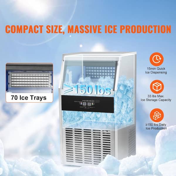 18 in. Commercial Ice Maker 150 lbs. /24 H Freestanding Ice Machine with 70 Cubes in 15 Minutes 33 lbs. Storage Capacity
