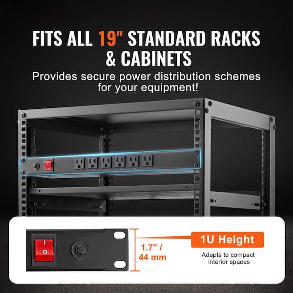 1U PDU, 12-Outlets Rack-Mount Power Strip, Surge Protection and Overload Protection 110-125-Volt, Ideal for Home, Office