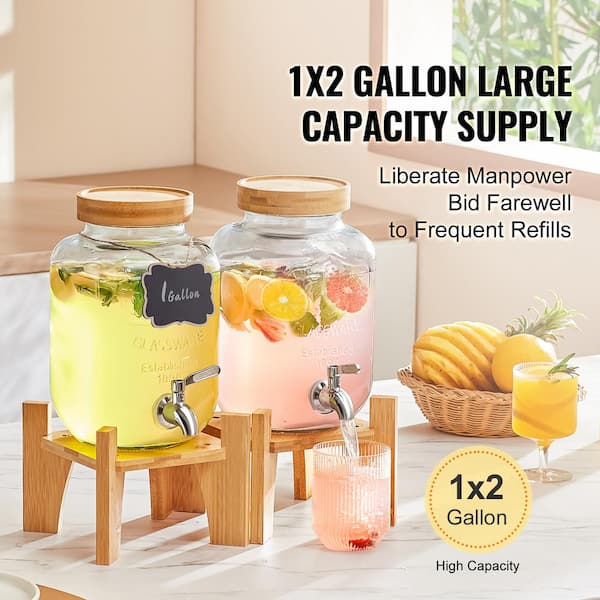 2.5 gal. Beverage Dispenser, Glass Drink Dispenser with Stainless Steel Spigot, Iced Tea Lemonade Juice Dispenser