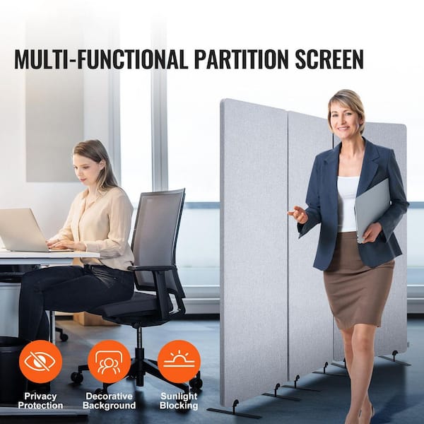 2 ft. Room Divider, 3-Panel PET Polyester Soundproof Screen, Folding Privacy Partition for Room Separation, Grey