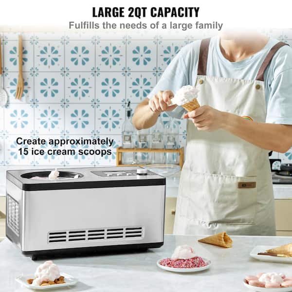 2 qt. Silver Automatic Ice Cream Maker, Built-in Compressor, Stainless Steel, with LCD Display and Temperature Features