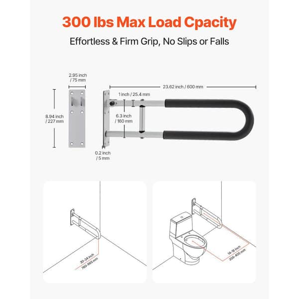 23.8 in. Toilet Safety Rail, U-Shaped Handicap Grab Bar, Foldable Flip-Up Toilet Grab Bar with Anti-Slip Handle