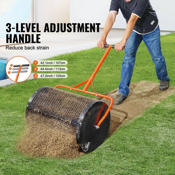 24 in. Compost and Peat Moss Spreader, Adjustable T-Shaped Handle Steel Mesh Basket Side Latches Broadcast Topsoil Black