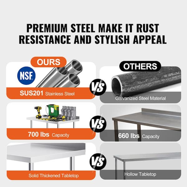 24 x 24 x 40 in. Stainless Steel Work Table, Commercial Kitchen Prep Table with Casters Worktable