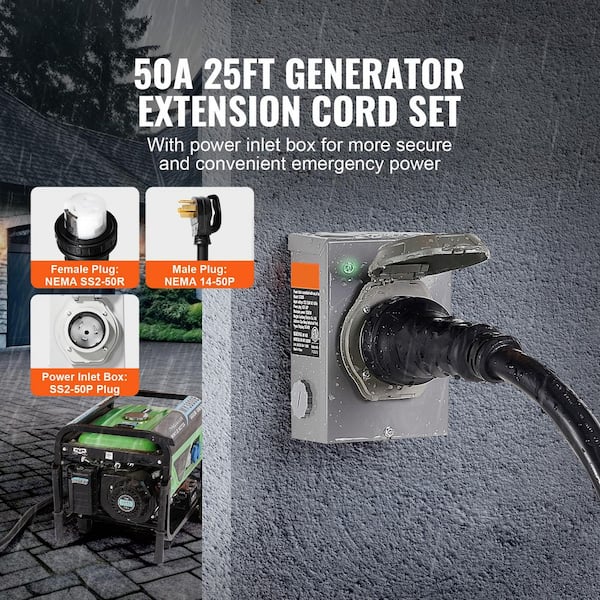 25 ft. 50 Amp 125 V Generator Extension Cord & Power Inlet Box Kit, NEMA 14-50P/SS2-50R Twist Lock Connector ETL Listed