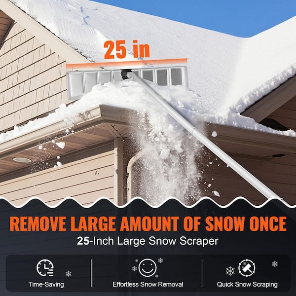 25 in. 252 in. Snow Roof Rake, Reach Aluminum Snow Removal Tool with Roll Wheels for Roof Protection, Anti-Slip Grip