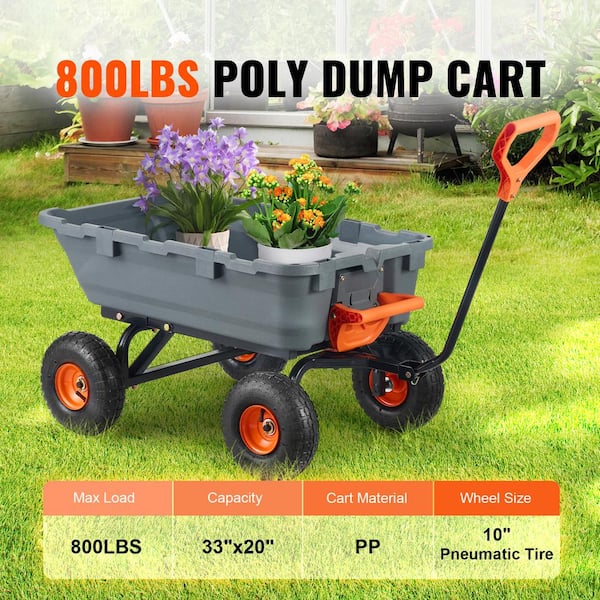 3.1 cu. ft. Dump Cart Poly Steel Frame Dump Wagon with 2 in 1 Convertible Handle 800 lbs. Capacity Garden Cart