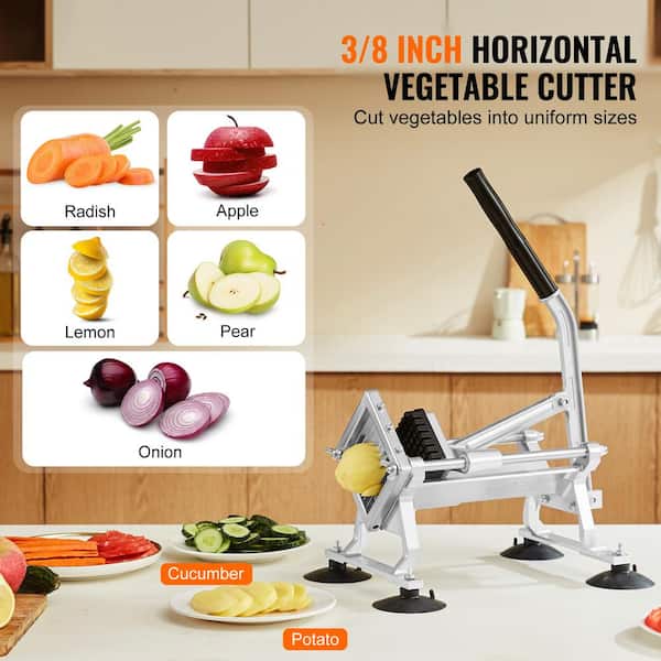 3/8 in. Commercial Vegetable Slicer, Stainless Steel and Aluminum Manual Cutter, Non-slip for Radishes, Onions