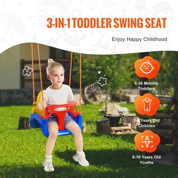 3-in-1 Toddler Swing Seat, Metal Outdoor Swing Set with 200lbs. Capacity, Adjustable Rope, Detachable Baby to Teen Swing