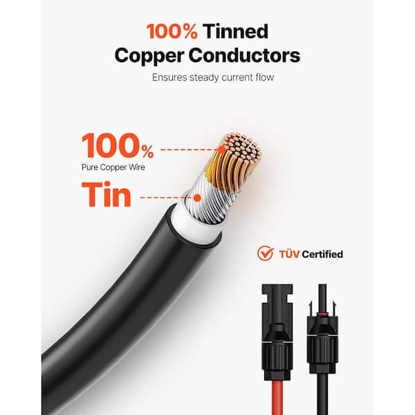 30 ft. 10AWG Solar Panel Extension Cable, Waterproof PV Wire, Red Black, Male Female Connectors for RV, Home