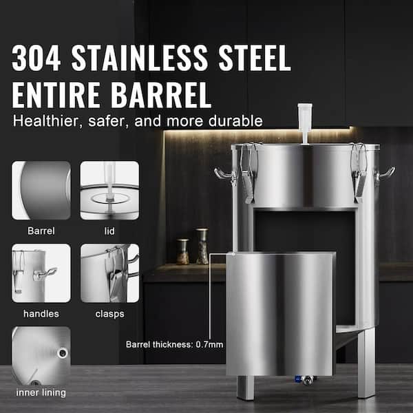 304 Stainless Steel Kettle, 16 gal. Beer Brew Fermenter, Brew Bucket for Home Brewing, Includes Lid, Handle, Valve