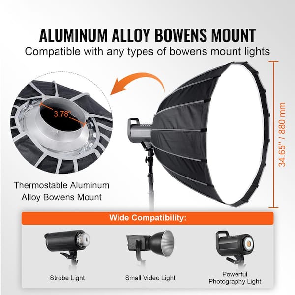 33 in.Parabolic Softbox, Quick Release and Fold, Lightweight, Universal Bowens Mount, 4 Lighting Effects for Photography