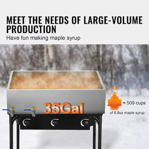 35 Gal. Maple Syrup Evaporator Pan 509 Cups Flat 304 Stainless Steel 2 Valves 3 Heating Methods 1 Piece and Cookware Set