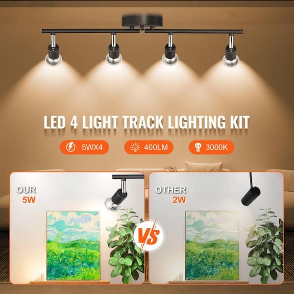 4 Pack-Light LED Track Lighting Set, Black, 24.8 in. Integrated LED Fixed Track, Cylinder 5 W 3000 K 400 lm