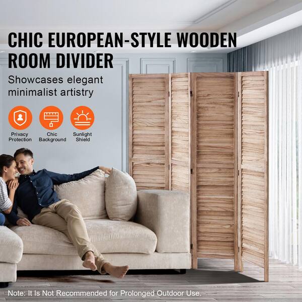 4-Panel Wood Room Divider, 66.9 in. Tall Folding Privacy Screen, Indoor Wooden Partition for Home, Office, Restaurant