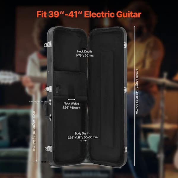 43.11 in. Electric Guitar Hard Case, Black Vinyl with Lock, Latch Keys and PVC Padding, Briefcase with 17 in. Laptop