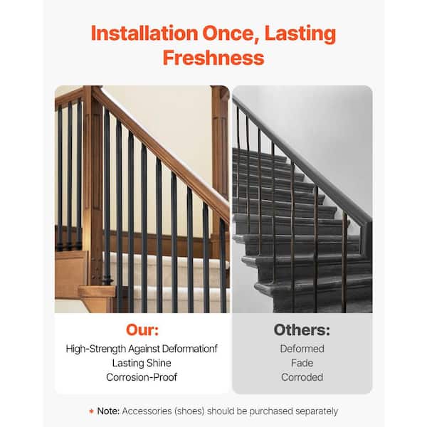 44 in. Stair Balusters 31 Pack Carbon Steel Square Metal Spindles Corrosion-Proof Pre-Drilled Matte Black 0.5 in.