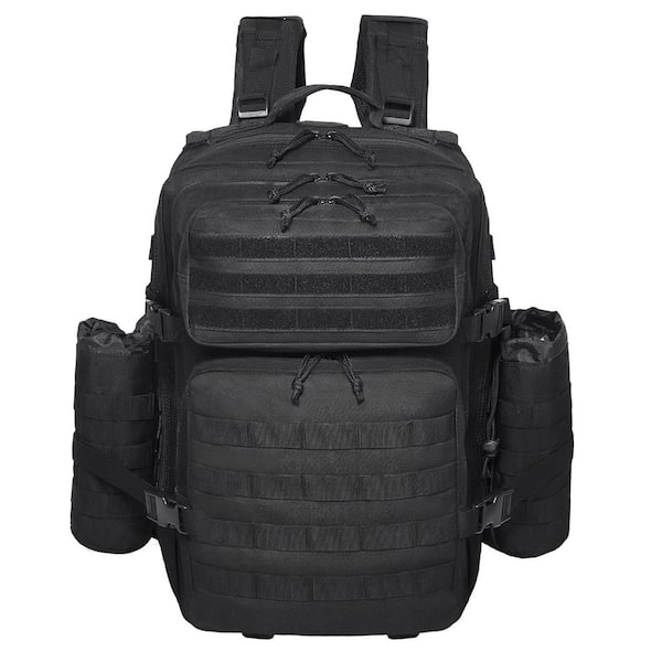 45L Tactical Backpack, 18.11 in. Black Backpack with, 3 Compartments, Army Assault Pack for Outdoor Adventure