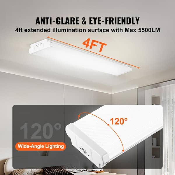 4FT LED Wraparound Light, 50W, 5500LM LED Shop Light 4 Pack 6500K Daylight LED Ceiling Light Fixtures 47.2 Length