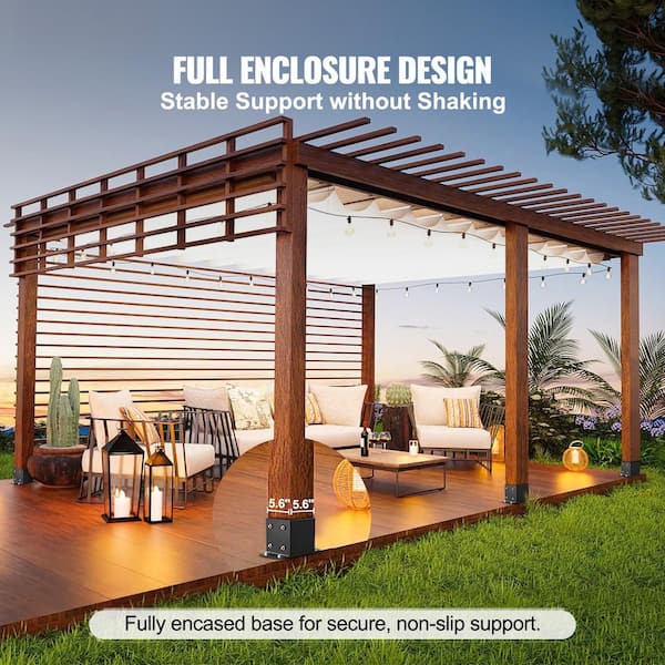 6 x 6 Post Base 4 Pcs 5.6 in. x5.6 in. Post Brackets Decking Board Powder-Coated Anchor Matte Black Compatible with Wood