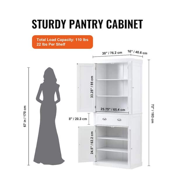 72 in. Kitchen Pantry Storage Cabinet, Freestanding Utility Cabinet with Doors, Tall Food Buffet for Kitchen, White