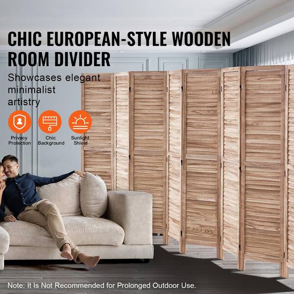 8-Panel Wood Room Divider, 66.9 in. Tall Folding Privacy Screen, Portable Louvered Partition for Home, Office Wood