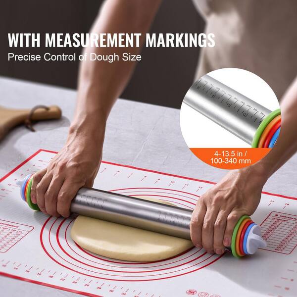 Adjustable Rolling Pin, 1-Piece Bakeware Set Stainless Steel Dough Roller Designs, Rolling Pin with Thickness Rings