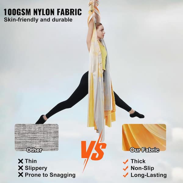 Aerial Yoga Hammock and Swing, 5.5 Yds, 100gsm Nylon, Complete Hardware, Easy Setup, Ideal for All-Level Fitness, Golden