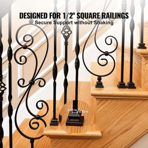 Aluminum Alloy Baluster Shoes, Flat Stair Shoe with Screw Holes for 1/2 in. Square, Scroll, Basket, Twist, Satin Black