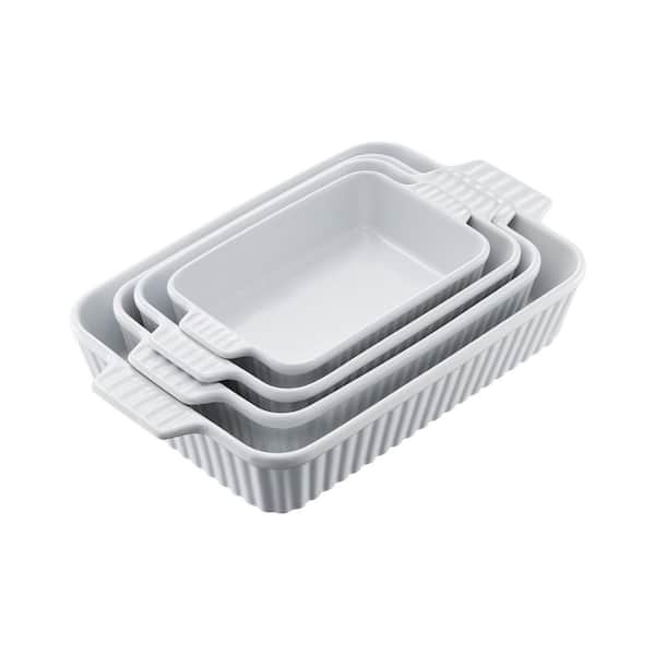 Bakeware Set, 4-Piece, 9 in. x 13 in. White Ceramic Cookware Set, Rectangular Casserole Pans with Handles, Oven-Safe