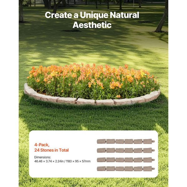 Brown Faux Stone Landscape Edging 46.4 x 2.2 in. Realistic Lawn Edging Brick-Sized Garden PE Plastic Edging Border