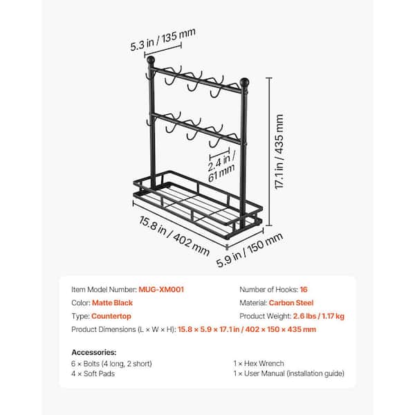 Coffee Mug Holder, 16 Hooks Coffee Cup Holder with Storage Base, 2 Tier Mugs Tree Rack, Carbon Steel Display Stand