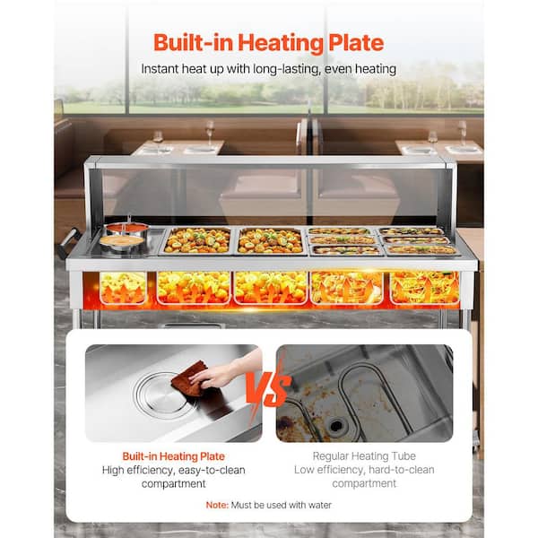 Commercial Food Warmer, 1800 Watt Electric Steam Table with 8-Pans and 2-Pots, Stainless Steel, with Undershelf Wheels