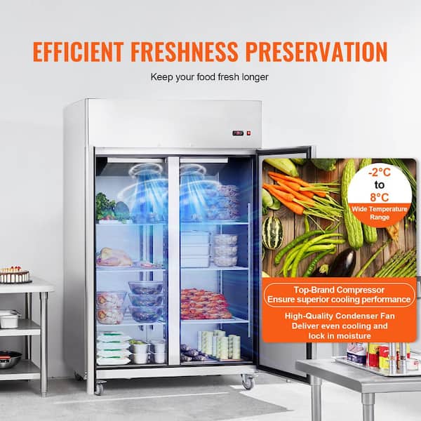 Commercial Refrigerator 44.21 Cu.ft, 54.4 in. Reach-In Upright Refrigerator with 2 Doors, Auto-Defrost Stainless Steel