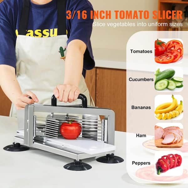 Commercial Tomato Slicer, 3/16 in. Cutter, Stainless Steel, Manual with Non-slip Feet, for Various Veggies and Fruits