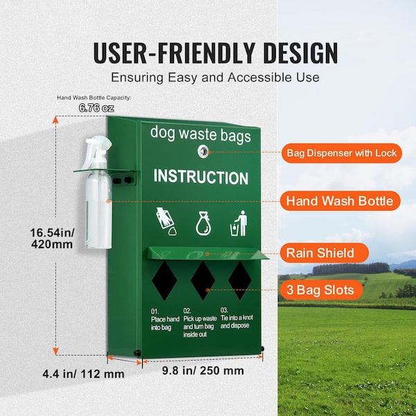 Dog Poop Bag Dispenser with Hand Wash Bottle, Lockable Waste Bag Holder with 600 Bags, Stake and Wall Mount for Porch