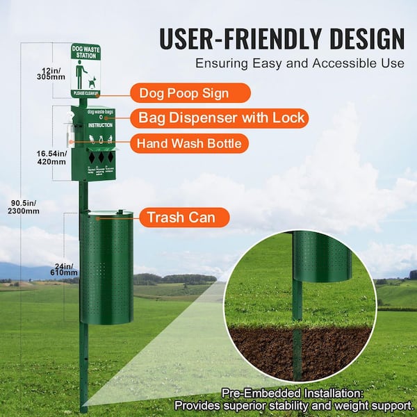 Dog Waste Station with Hand Wash Bottle, 11.5 gal. Pet Waste Bin, 50 Can Liners, Bag Dispenser and 600 Waste Bags