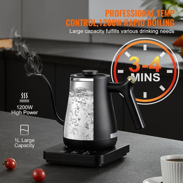 Electric Gooseneck Kettle 1L, Temperature Control Pour Over Coffee Maker with 5 Presets, 304 Steel, 4.2cups, black