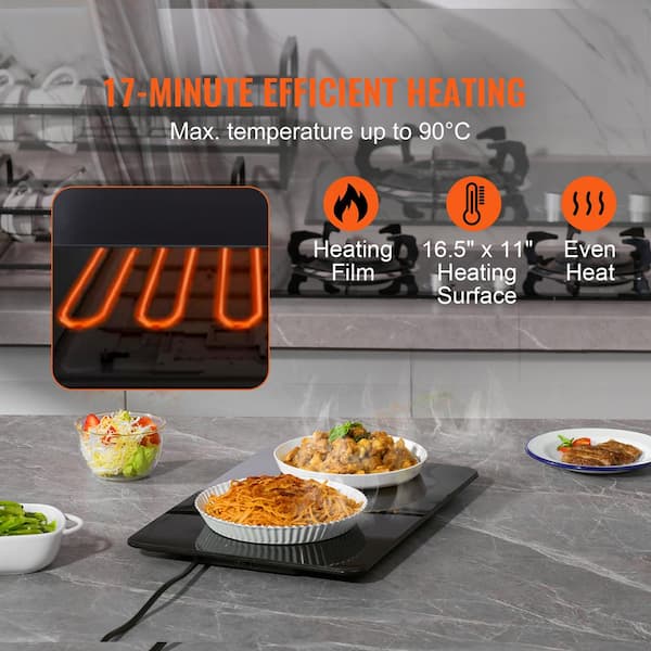 Electric Warming Tray, 16.5 in. x 11 in. Portable Tempered Glass Heating Tray with Temperature Control (65-90℃), Black