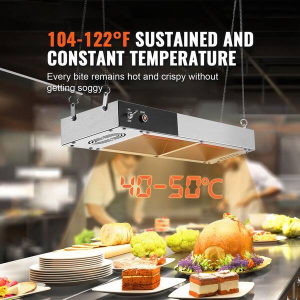 French Fry Food Warmer, Strip Heating Lamp, Stainless Steel, Overhead 104-122°F in Silver Buffet Server with 2-Crocks