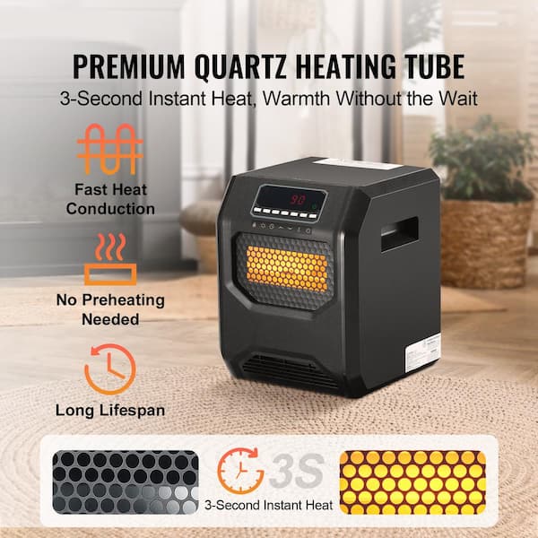 Infrared Heater 1,500 W 3 Speeds Timer Overheat/Tip-Over Protection Child Lock Cabinet Convection Electric Space Heater