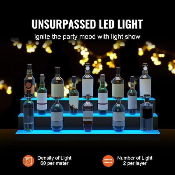 LED Lighted Liquor Bottle Display, 10 in. H x 12 in. W 30-Bottle, Multi-Colored Acrylic Bar Shelf with RF Remote