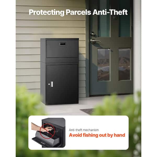 Package Delivery Box, Locking Mailbox, Anti-Theft, Weather-Resistant, 21.5 Gal. 38.6 in. Black Galvanized Steel Deck Box