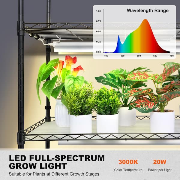Plant Stand with Grow Light, 6-Tier Large 200W Shelf, 3000K Full Spectrum with Timer and Wheel for Indoor Seed Starting