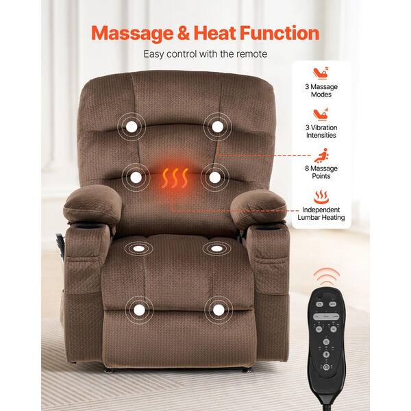 Power Lift Recliner Chair for Elderly, Dual Motor with Heat and Massage, USB Port, Infinite Position Adjustment, Brown