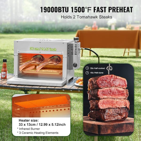 Propane Steak Grill, Portable Propane Grill in Stainless Steel, 6-Tier Stainless Steel Rack for BBQ, Outdoor Picnic