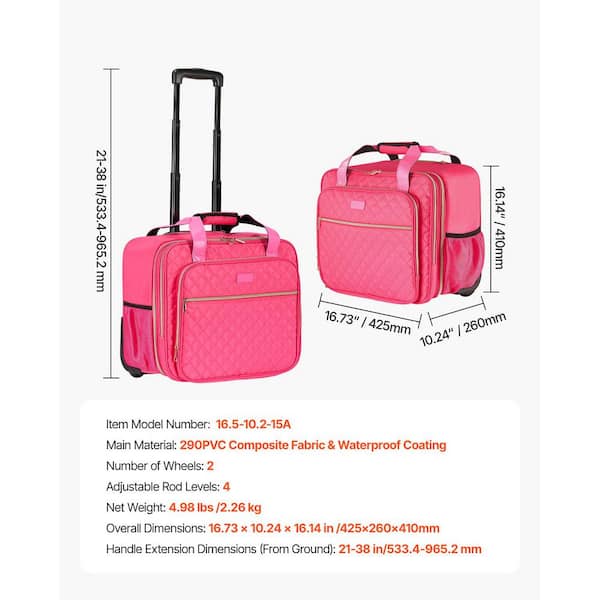 Rolling Laptop Bag, Fits 17.3 In., 2 Fixed Wheels and Telescopic Handle, for Work Travel Office Women, Pink