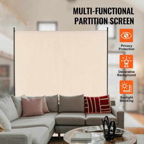 Room Divider, 6 ft. Single Panel Privacy Screen, Freestanding Partition for Room Separation Beige Polywire