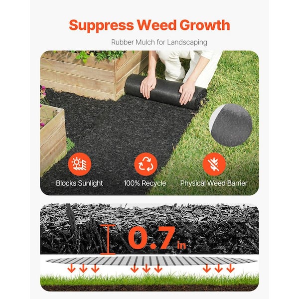 Rubber Mulch for Landscaping, 2-Rolls 96 x 22 in. Recycled Rubber Mat, Permanent Pathway, Natural Black Mulch