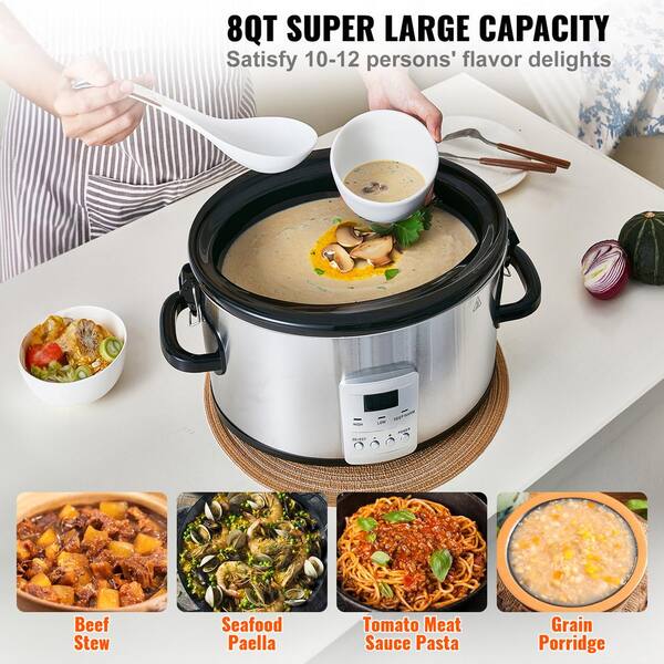 Slow Cooker, 8 qt. 320-Watt Silver Rice/Slow Cooker 3-Level Heat Settings with 20 Hours Max Timer, Digital, Locking Lid
